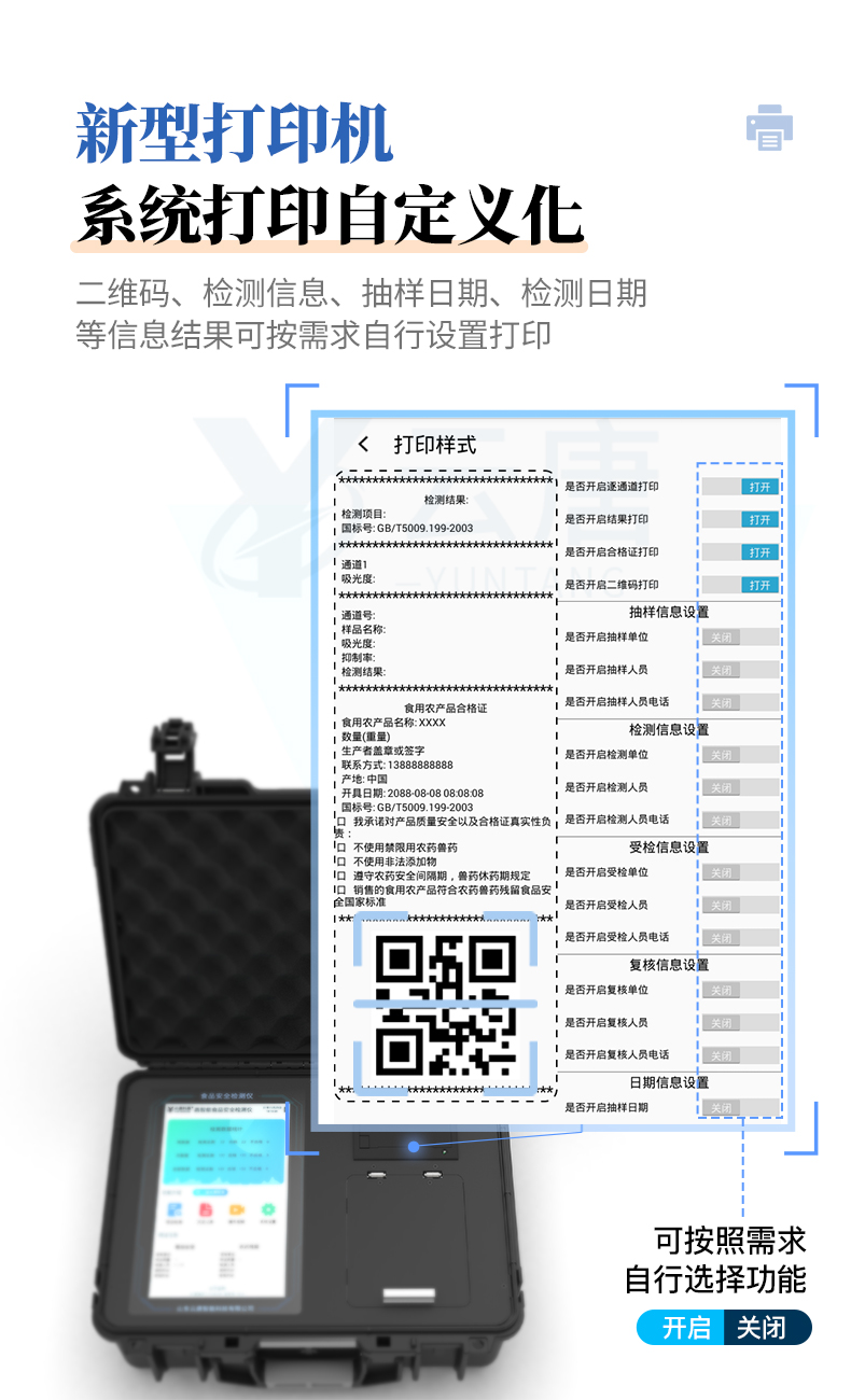*10、系統(tǒng)打印自定義化,打印格式多樣化,產(chǎn)品合格證(國家標(biāo)準(zhǔn)要求),二維碼,抽樣信息、檢測信息,受檢信息、復(fù)核信息、抽樣日期、檢測日期等信息結(jié)果,可按需求自行設(shè)置打印。